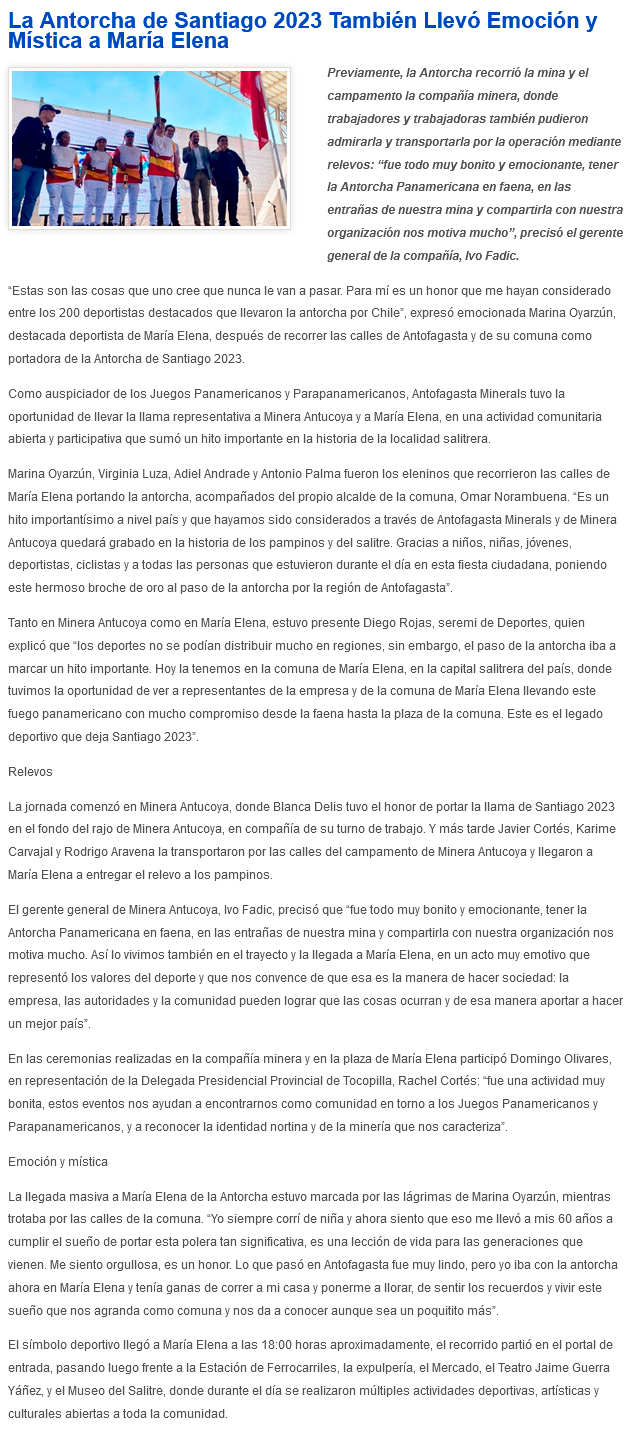 La antorcha de "Santiago 2023" llevó emoción y mística a María Elena - (Estrella de Tocopilla)