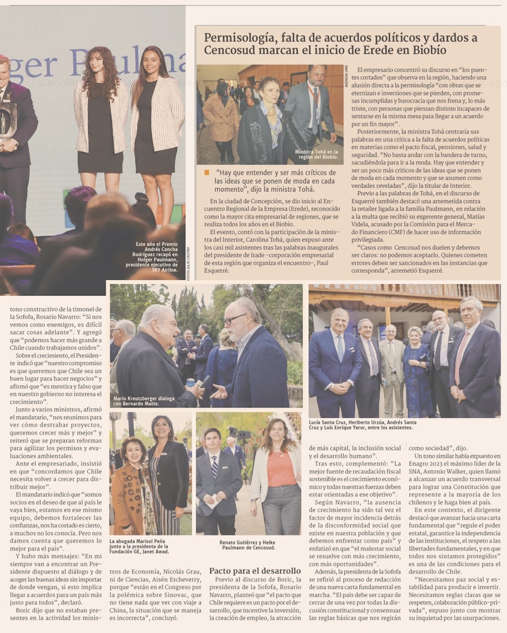 Sofofa pide a autoridades certeza jurídica y Presidente Boric llama a reflotar pacto fiscal - (El Mercurio de Santiago)