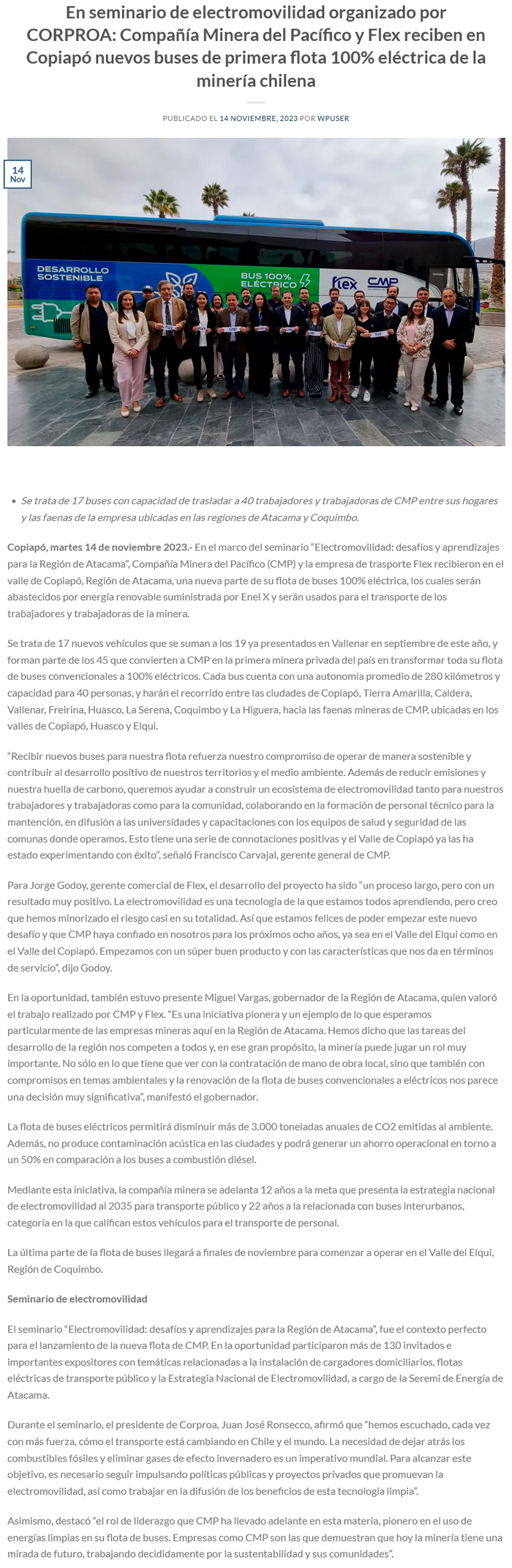 Video | CMP contará con moderna flota de buses eléctricos para trasladar a su personal en el Valle de Copiapó - (Nostálgica Online)