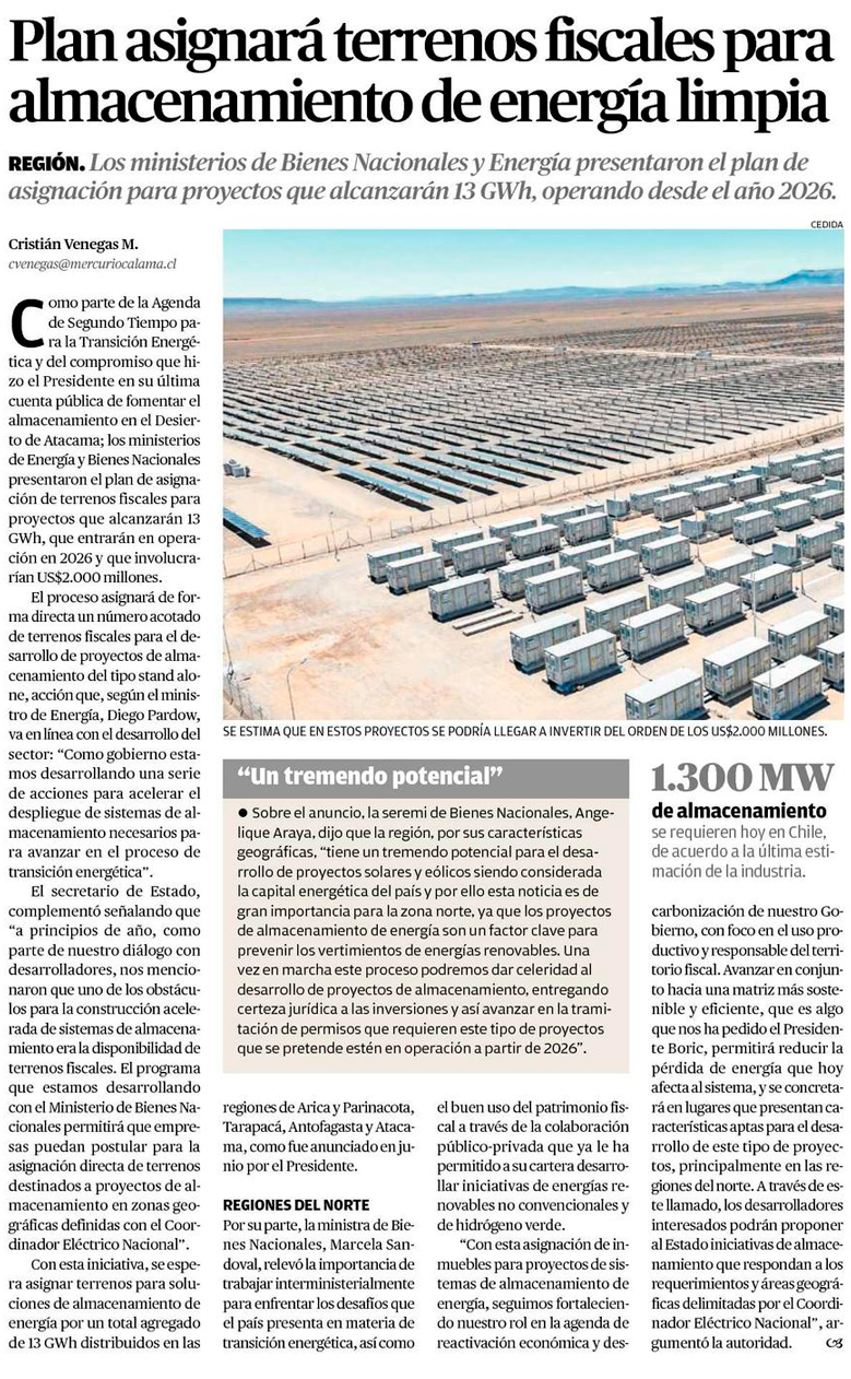 Bienes Nacionales habilita terrenos fiscales para proyectos de almacenamiento de energía en la Región de Antofagasta - (soyantofagasta)