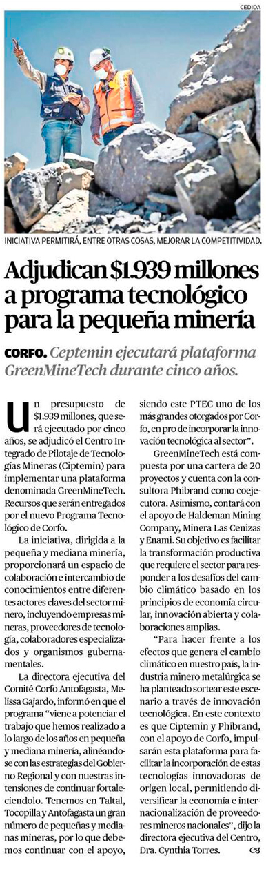 CORFO adjudica programa tecnológico para la pequeña y mediana minería por más de $1.900 millones - (elamerica)