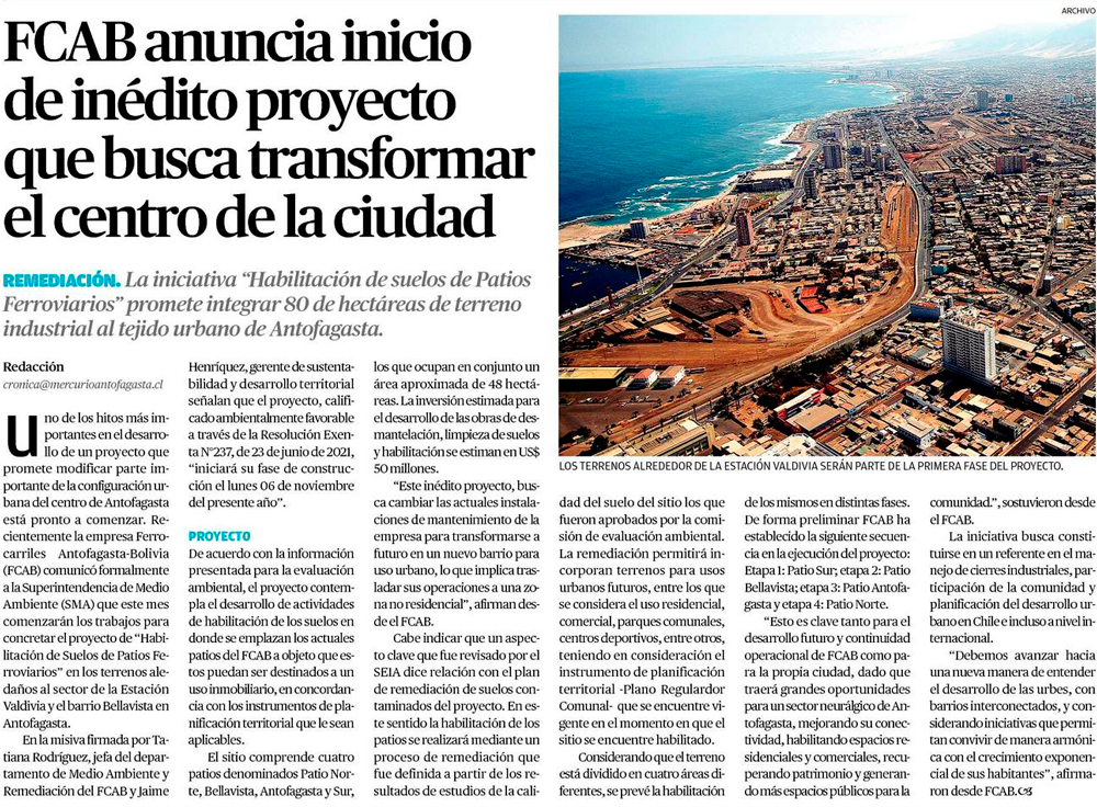 FCAB comenzó trabajos para reconvertir terrenos de los patios de Bellavista en Antofagasta - (soyantofagasta)