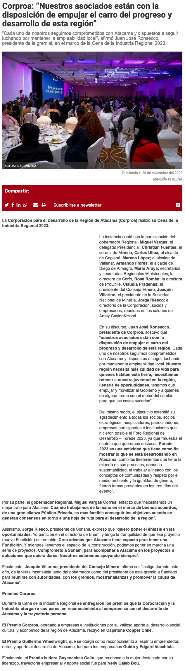 Corproa celebra Cena Anual de la Industria Regional - (portalVallenarDigital.cl)