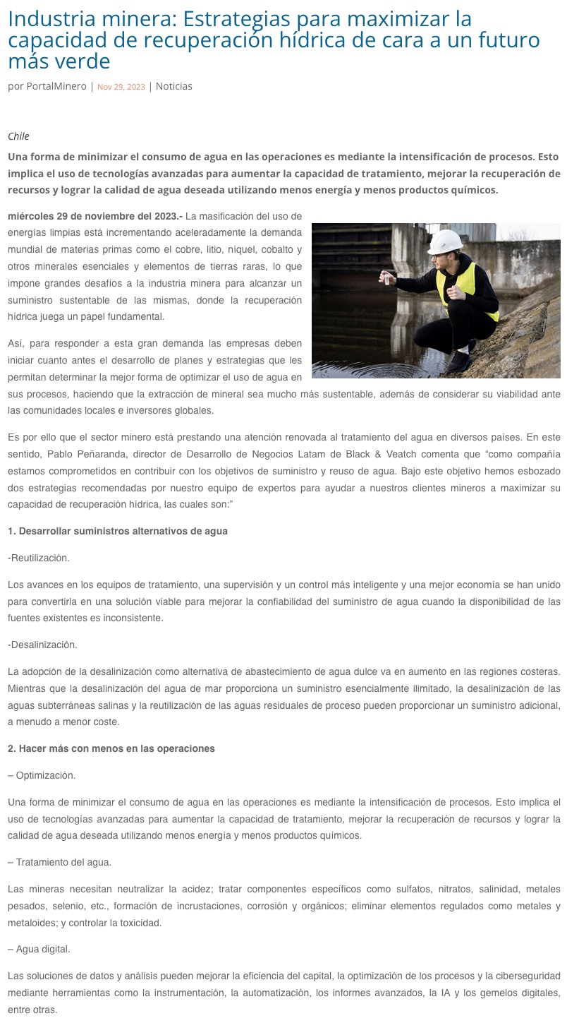 Industria minera en Chile: Estrategias para maximizar la capacidad de recuperación hídrica de cara a un futuro más verde - (portalinnova.cl)