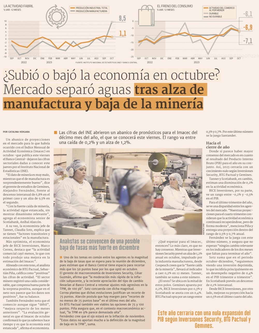 Con índices sectoriales mixtos en octubre, analistas ven estancamiento en la actividad - (El Mercurio de Santiago)