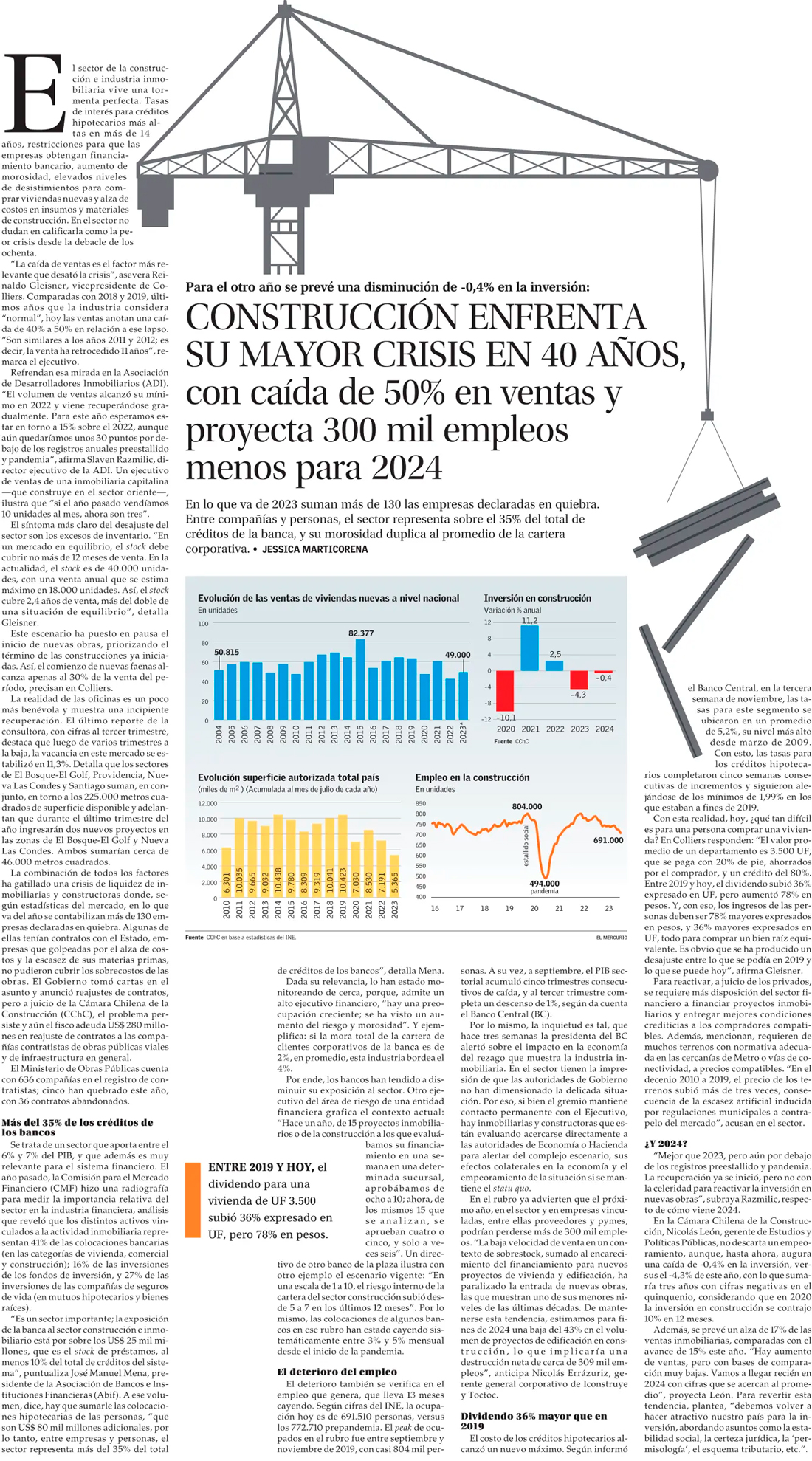 La construcción se prepara para 2024: anticipan más quiebras y piden a la banca ser menos restrictivos - (Diario Financiero)