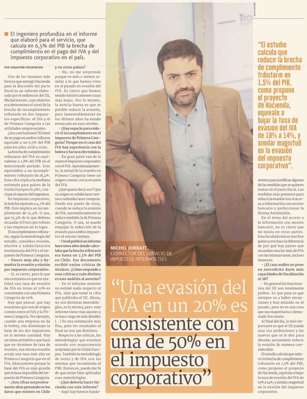 Se abre debate por el cálculo: Hacienda estima que evasión y elusión de empresas reducen a la mitad su pago de impuestos - (El Mercurio de Santiago)