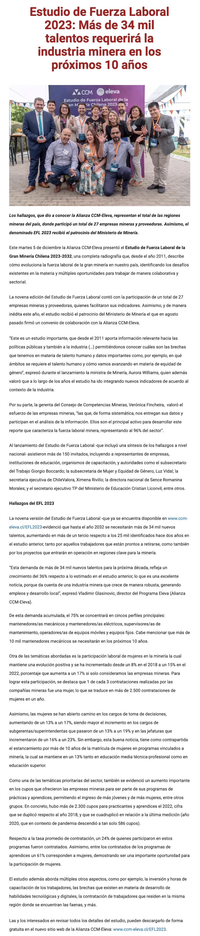 Estudio de Fuerza Laboral 2023: Más de 34 mil talentos requerirá la industria minera en los próximos 10 años - (diarioestrategia.cl)