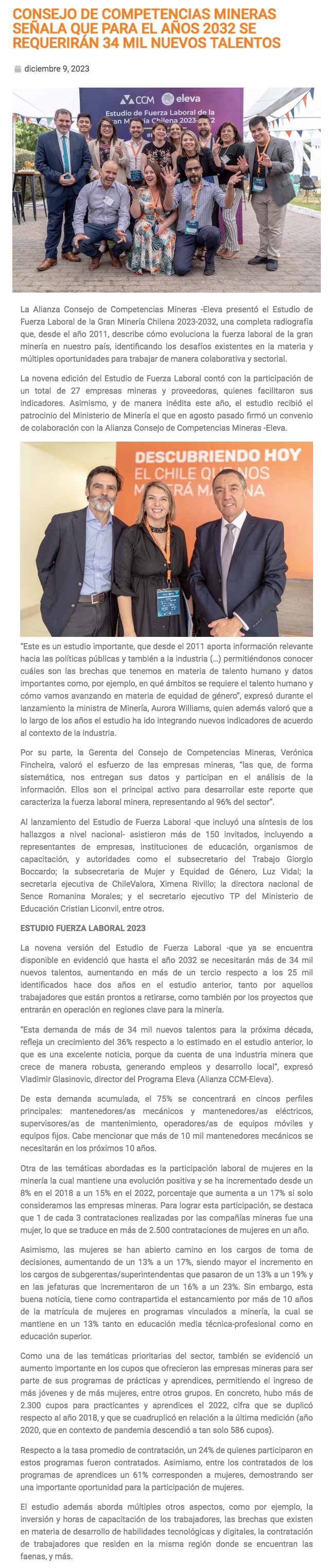 Estudio de Fuerza Laboral 2023: Más de 34 mil talentos requerirá la industria minera en los próximos 10 años - (diarioestrategia.cl)