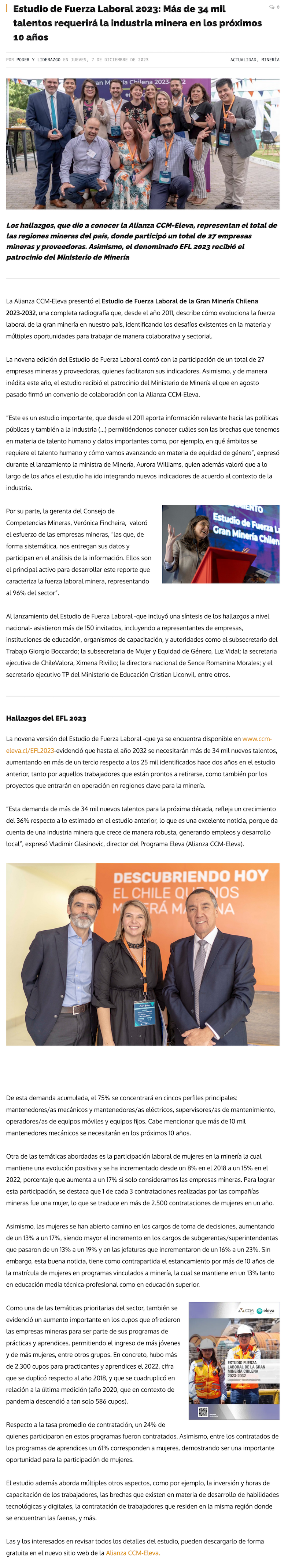 Estudio de Fuerza Laboral 2023: Más de 34 mil talentos requerirá la industria minera en los próximos 10 años - (diarioestrategia.cl)