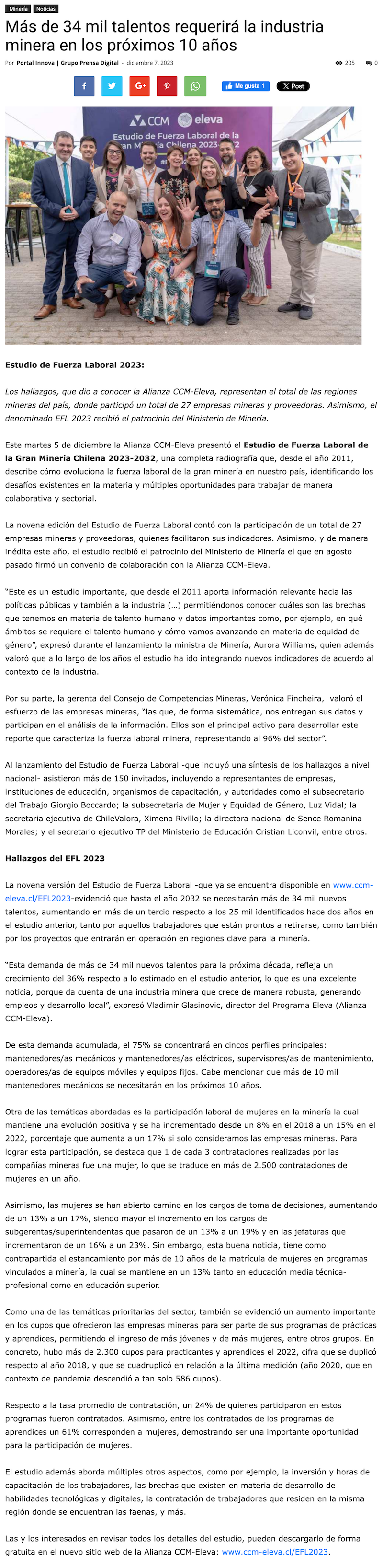 Estudio de Fuerza Laboral 2023: Más de 34 mil talentos requerirá la industria minera en los próximos 10 años - (diarioestrategia.cl)
