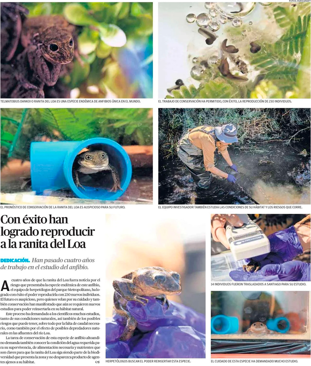230 individuos de la ranita del Loa han logrado reproducirse en el parque Metropolitano - (El Mercurio de Antofagasta)