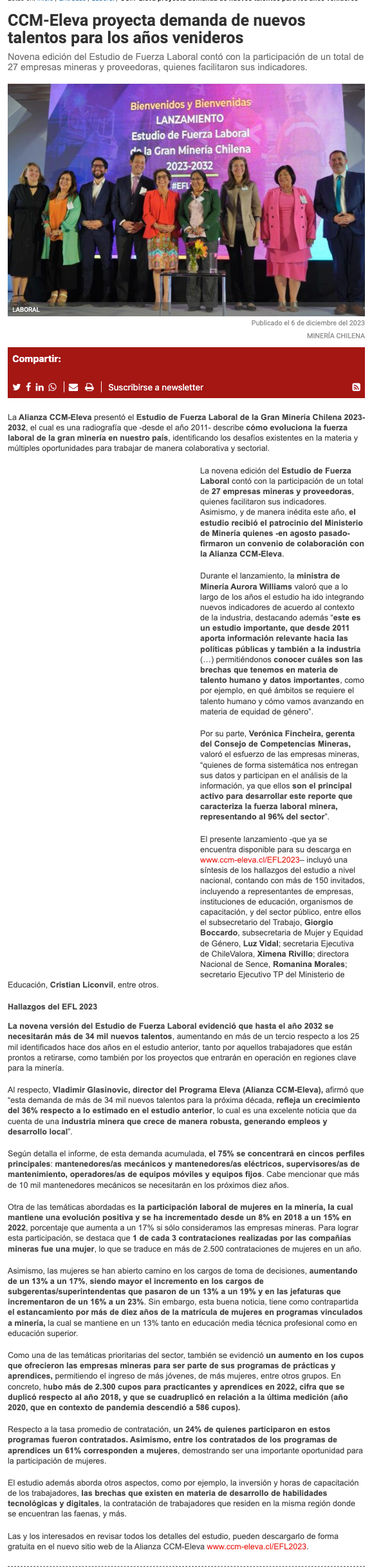 Estudio de Fuerza Laboral 2023: Más de 34 mil talentos requerirá la industria minera en los próximos diez años - (redimin)
