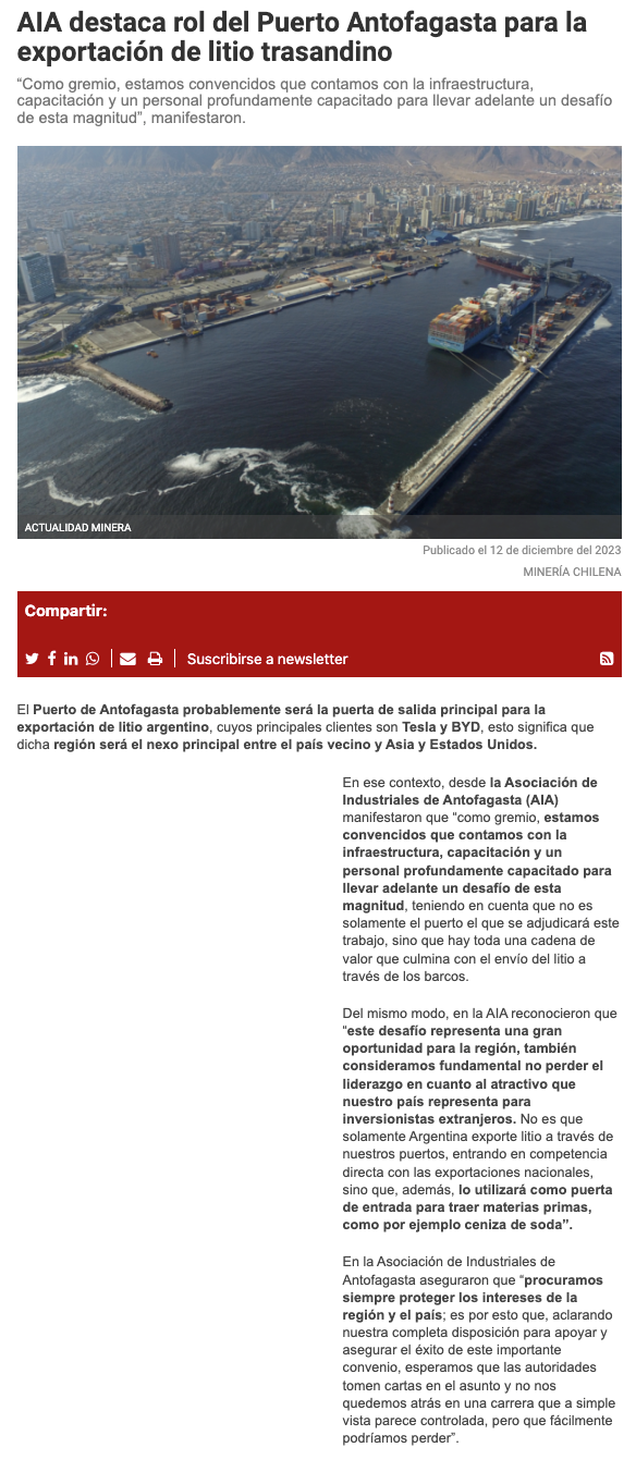 AIA potencia al Puerto de Antofagasta para salida del litio argentino hacia EE.UU. y Asia - (soyantofagasta)