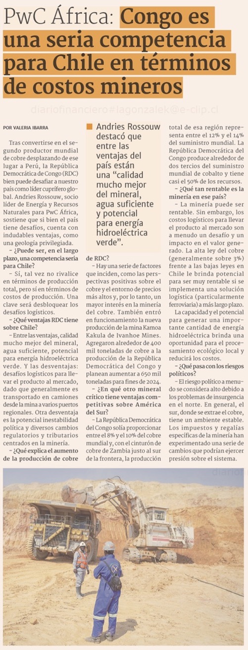 Socio de PwC África: Congo es una seria competencia para Chile en términos de costos - (redimin)