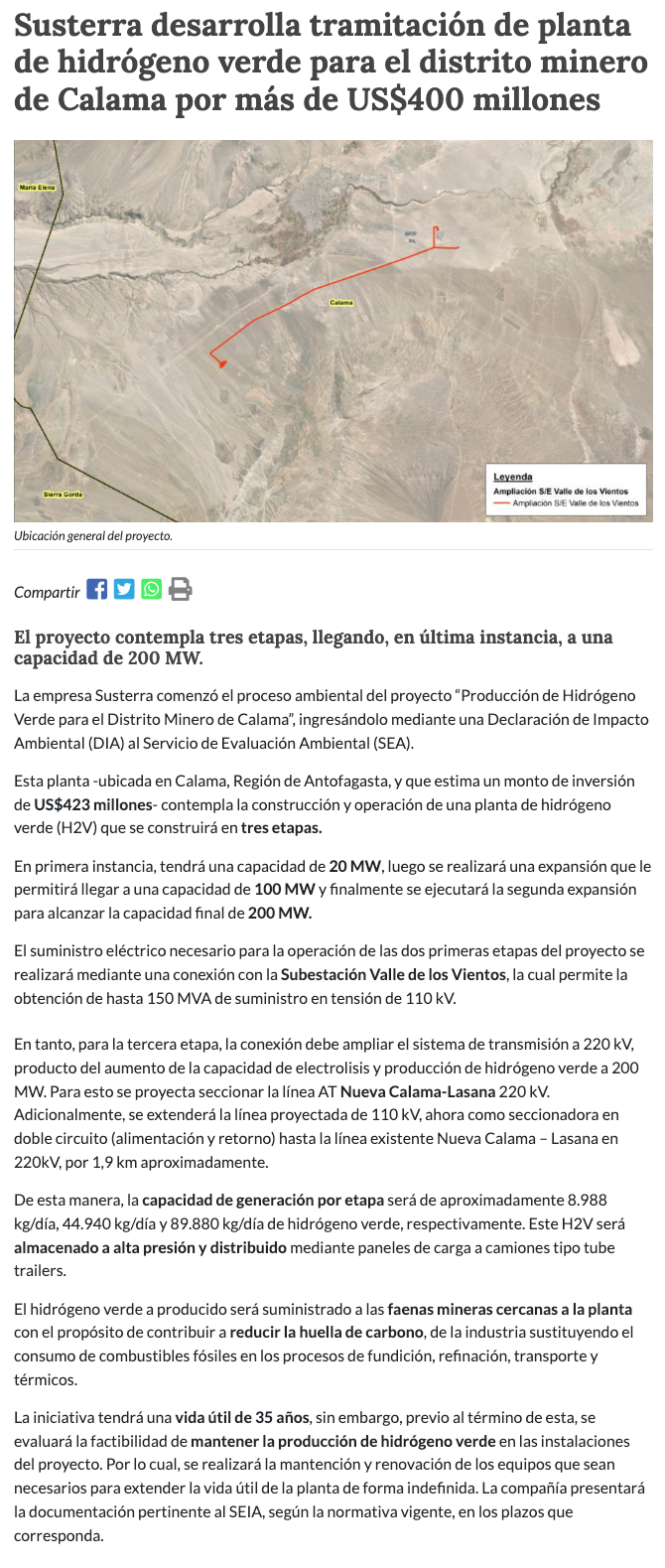 Desarrollan ambicioso proyecto de hidrógeno verde en Calama - (El Mercurio de Calama)