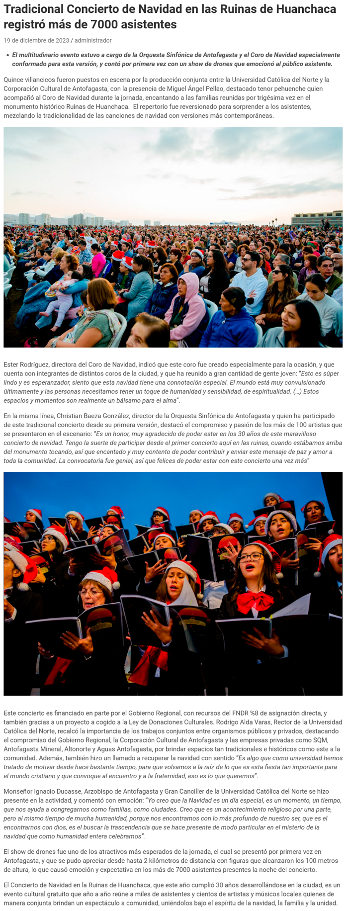 Gran asistencia a concierto navideño en las Ruinas de Huanchaca - (El Mercurio de Antofagasta)