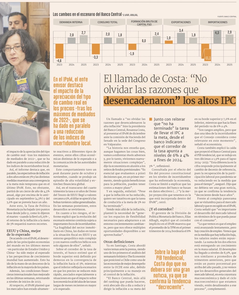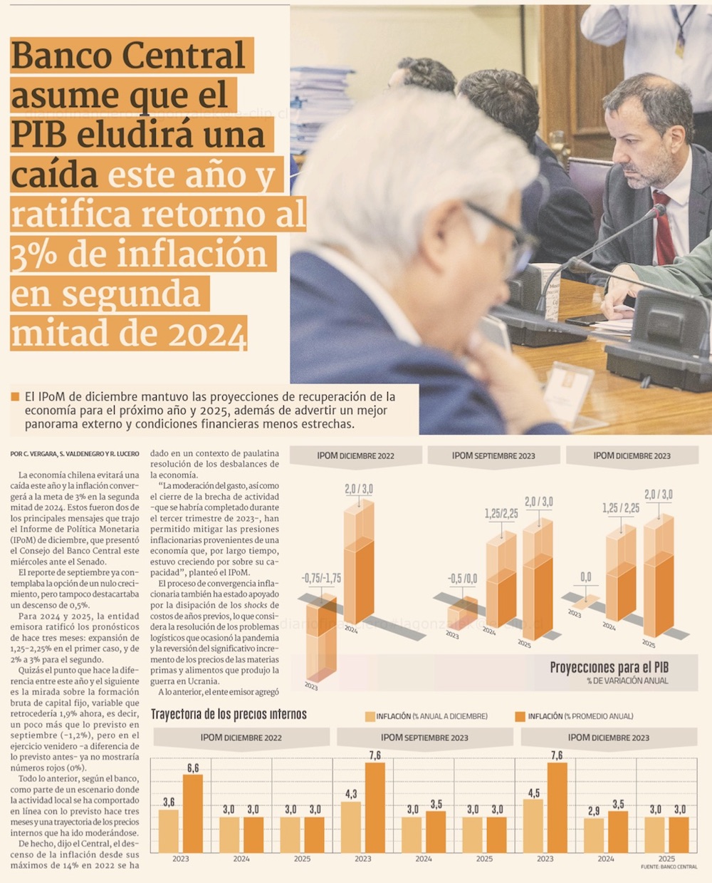 Banco Central reafirma que inflación estará en 3% en el segundo semestre del próximo año y anticipa una TPM en torno a 5% a fines de 2024 - (Pulso)