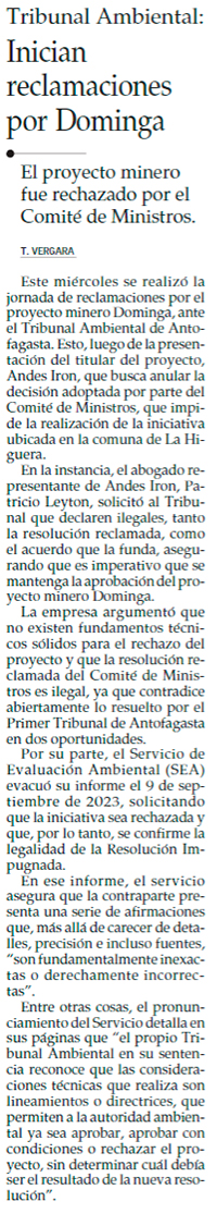 Dominga presentó alegatos en el Primer Tribunal Ambiental de Antofagasta - (La Región)