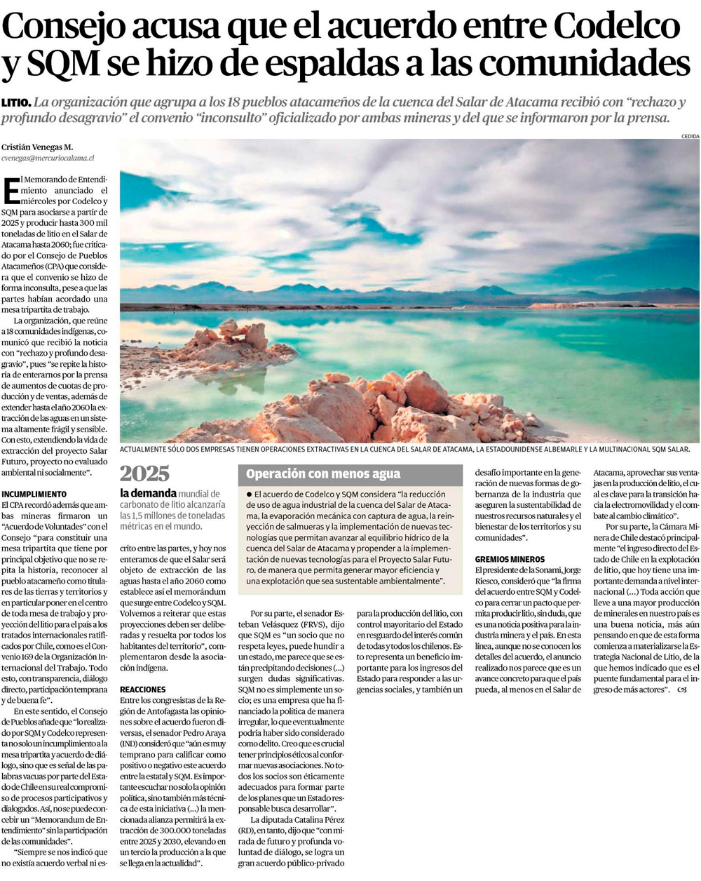 ¿Quiebre atacameño? Comunidades divididas tras el acuerdo entre Codelco y SQM - (La Segunda)