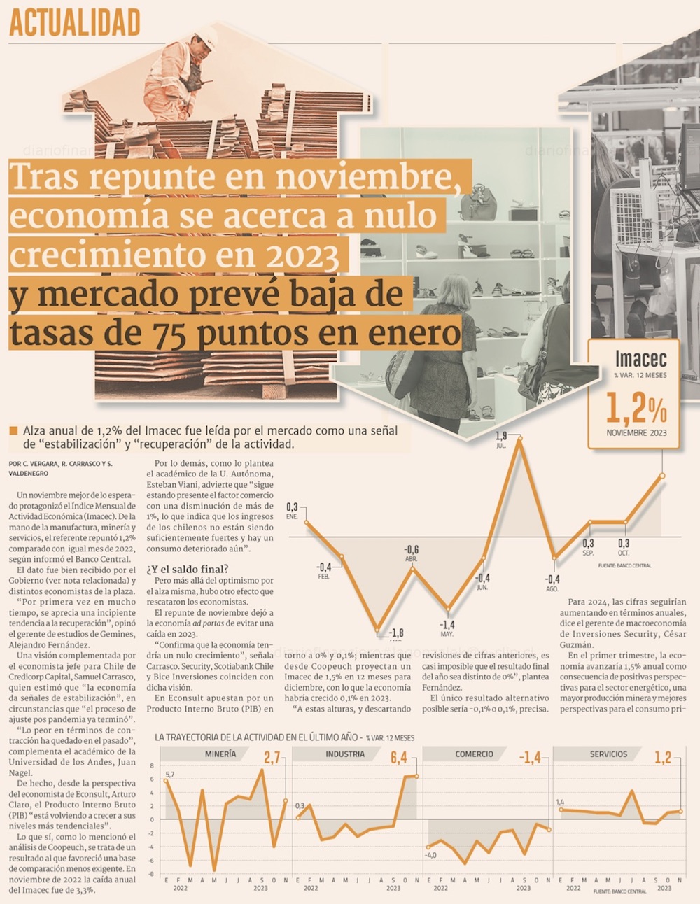 Pese a repunte en noviembre, la actividad económica habría cerrado plana en 2023 - (El Mercurio de Santiago)