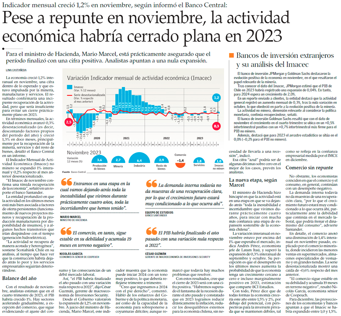 Tras positivo Imacec de noviembre economía aseguraría al menos un crecimiento nulo en 2023 - (Pulso)