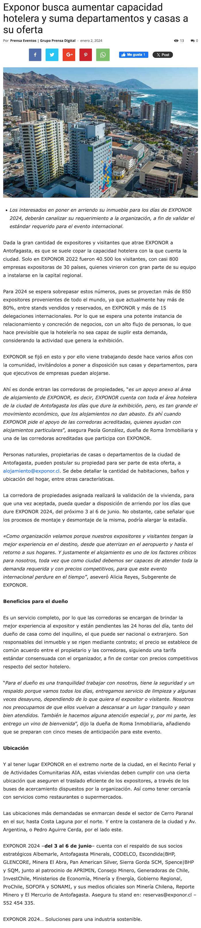 Exponor 2024 aumentará capacidad hotelera en Antofagasta y suma departamentos y casas a su oferta - (portalminero)