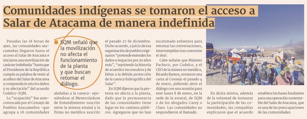 CPA ocupa indefinidamente el ingreso al Salar de Atacama - (El Mercurio de Antofagasta)
