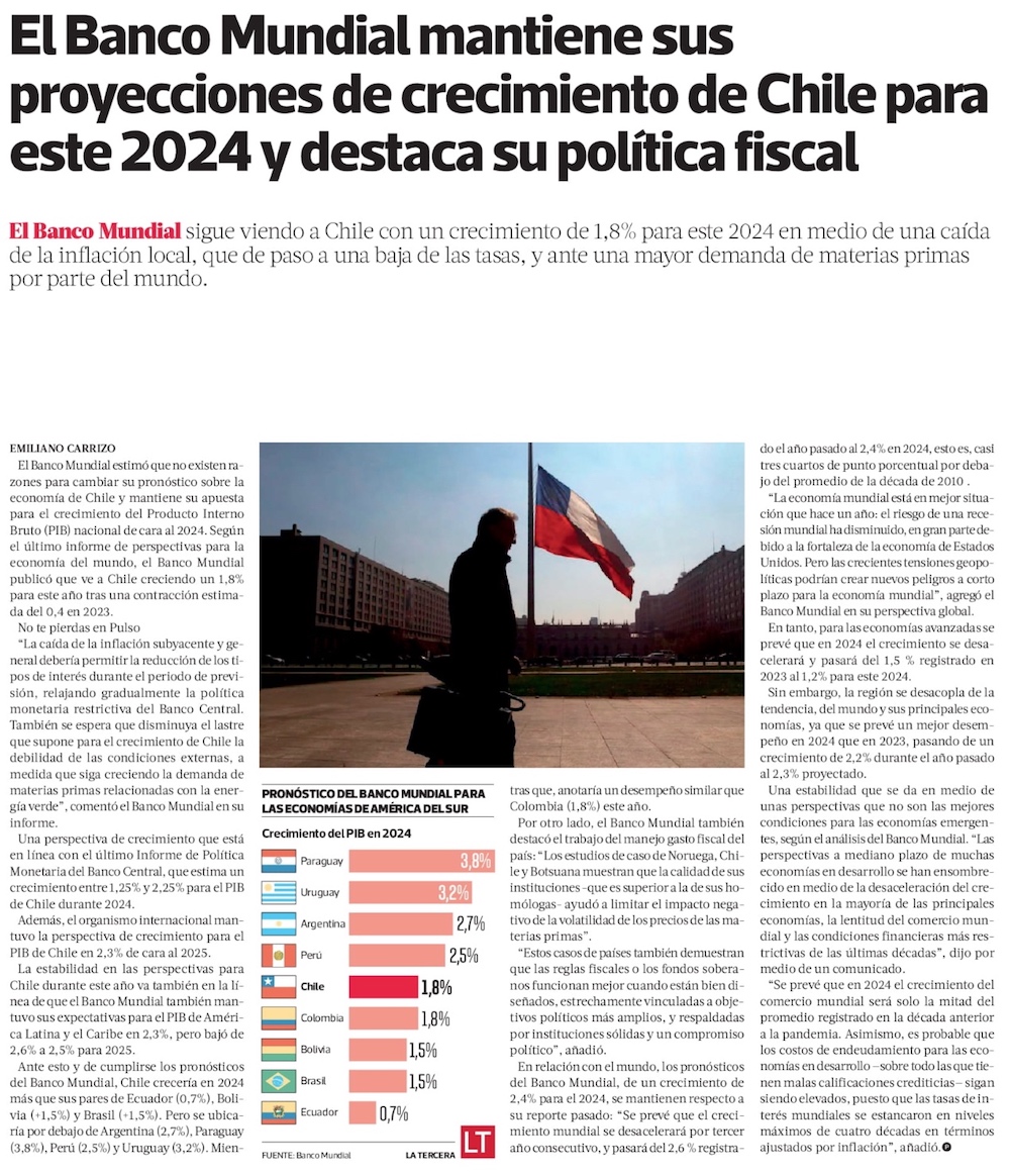 Banco Mundial: Chile crecería 1,8% en 2024 - (El Mercurio de Santiago)