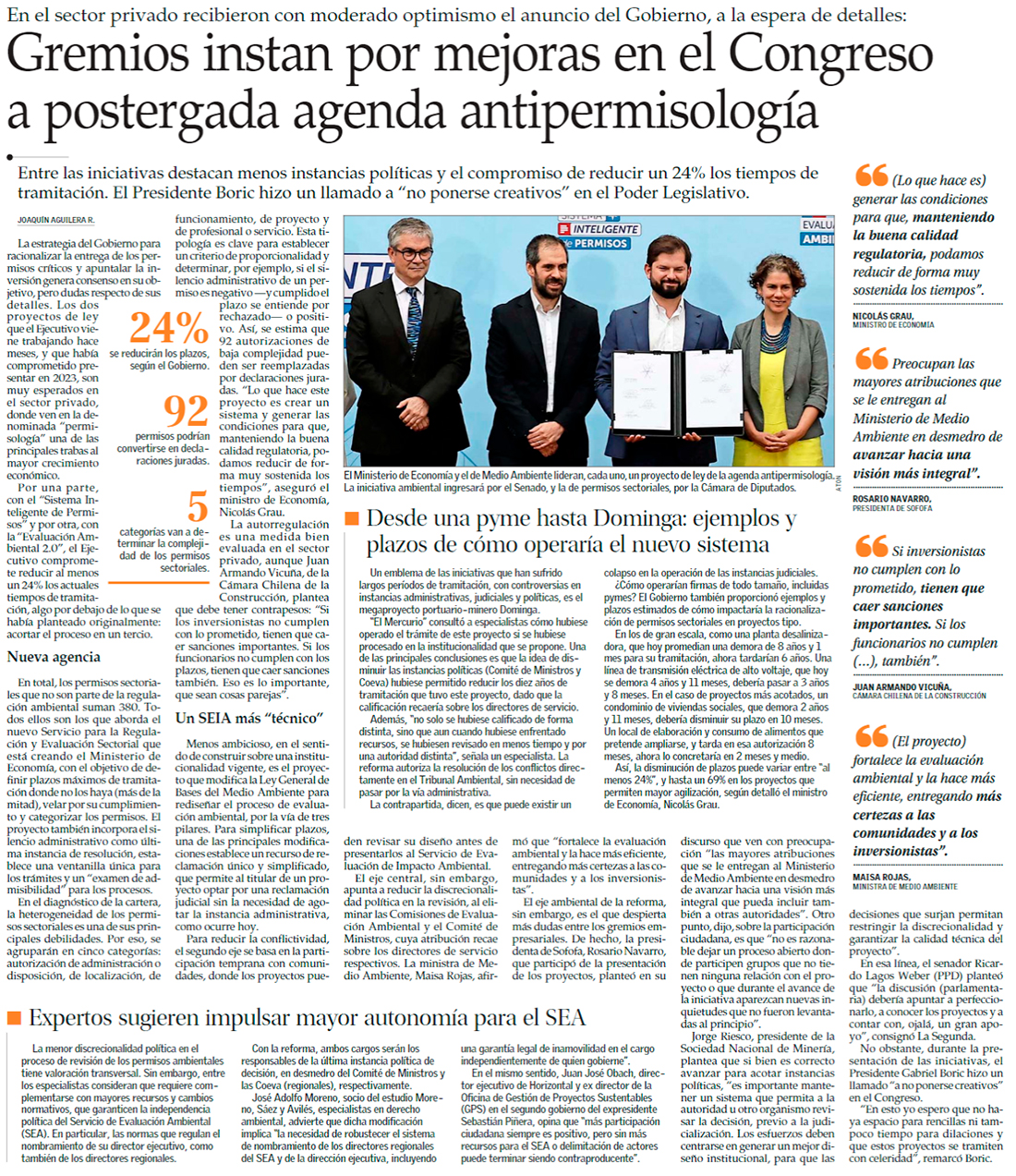 Empresarios valoran anuncios, pero tienen dudas sobre más atribuciones a Medio Ambiente - (Diario Financiero)