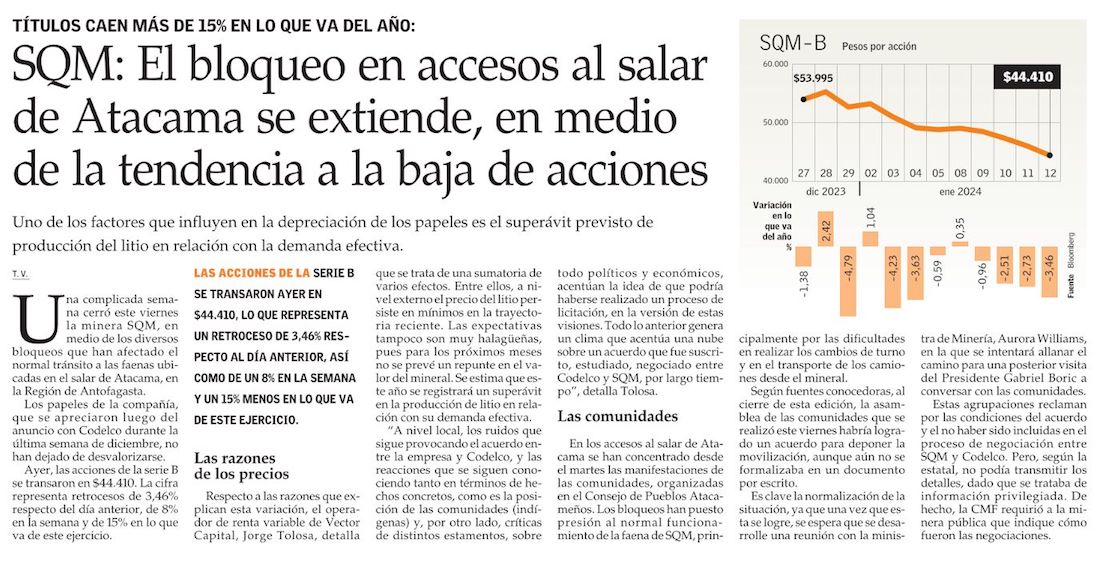 Protestas en Salar de Atacama: SQM suspendió operaciones - (cooperativa online)