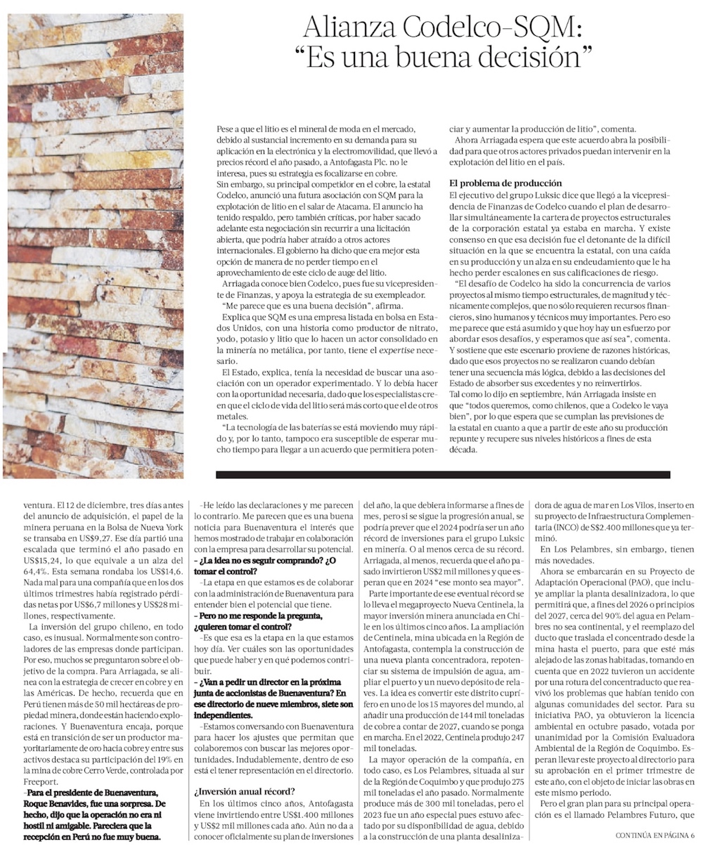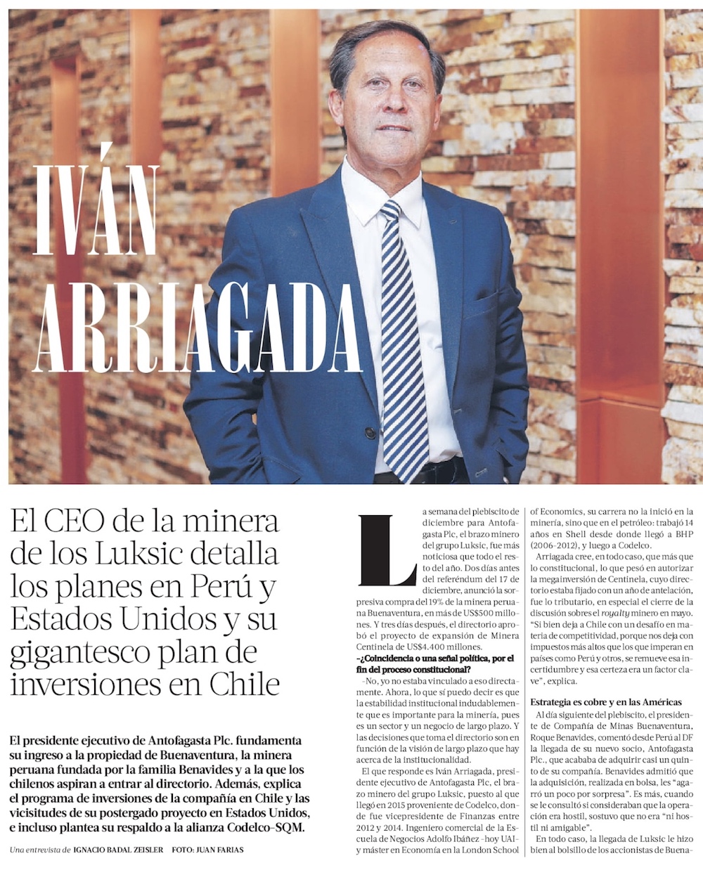 El CEO de la minera de los Luksic detalla los planes en Perú y Estados Unidos y su gigantesco plan de inversiones en Chile - (La Tercera Online)