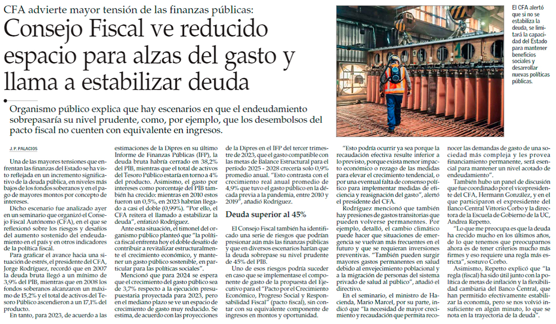 Economistas llaman a contener deuda pública y Marcel apunta a mayor recaudación vía crecimiento - (Diario Financiero)