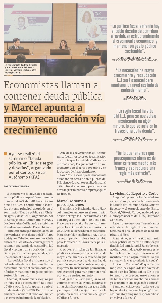 Consejo Fiscal ve reducido espacio para alzas del gasto y llama a estabilizar deuda - (El Mercurio de Santiago)