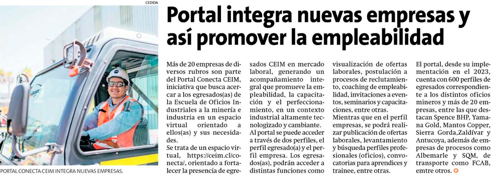 Portal Conecta de CEIM inicia su segundo año e integra nuevas empresas para promover la empleabilidad - (calamaenlinea.cl)