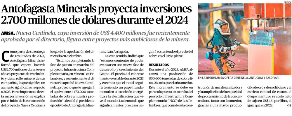 Antofagasta Minerals anunció inversión de US$2.700 millones en proyectos de desarrollo productivo para 2024 - (soyantofagasta)