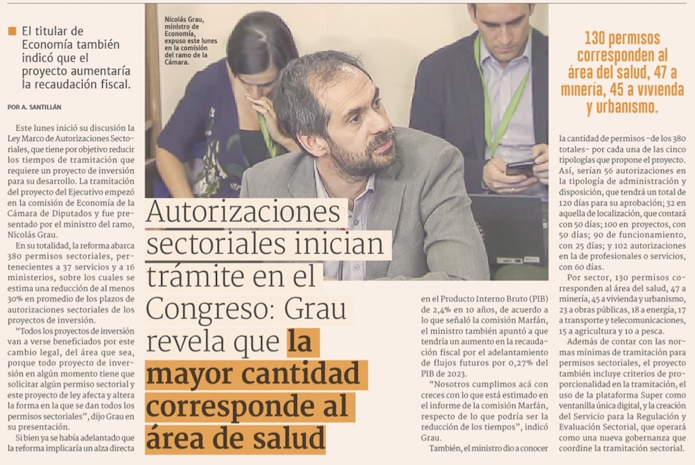 Ministro Grau detalla reforma de permisos sectoriales y explica cómo se reducirán los tiempos totales - (Pulso)