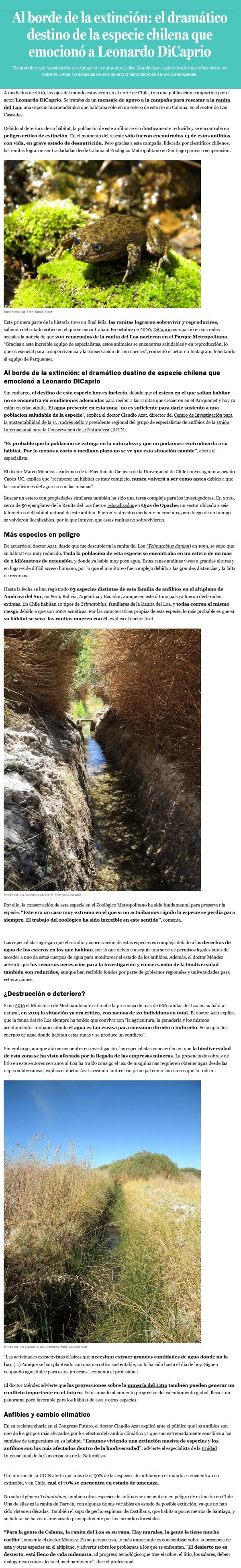 Al borde de la extinción: el destino de la Ranita del Loa - (La Tercera)