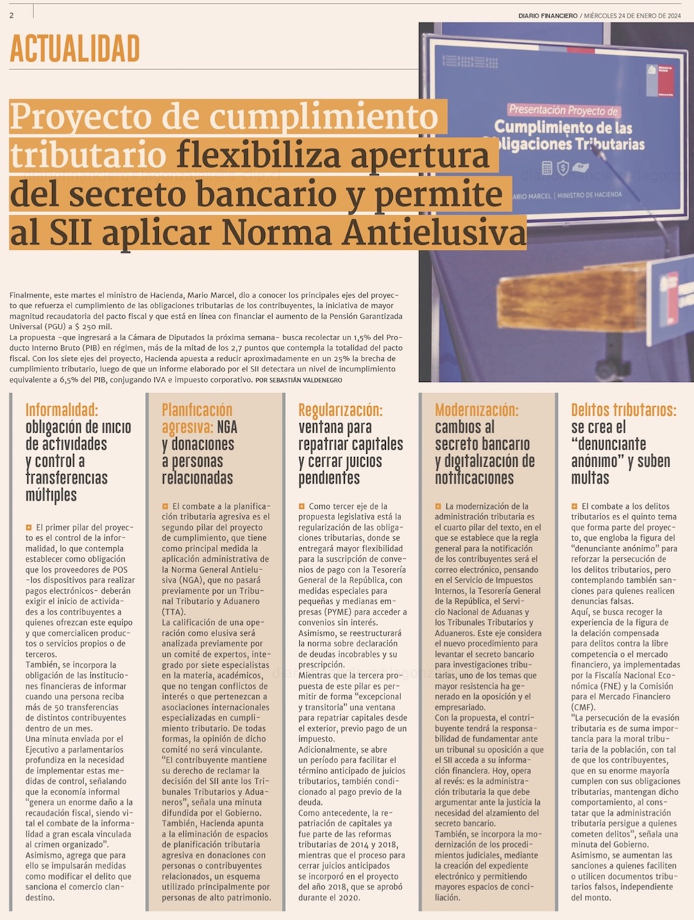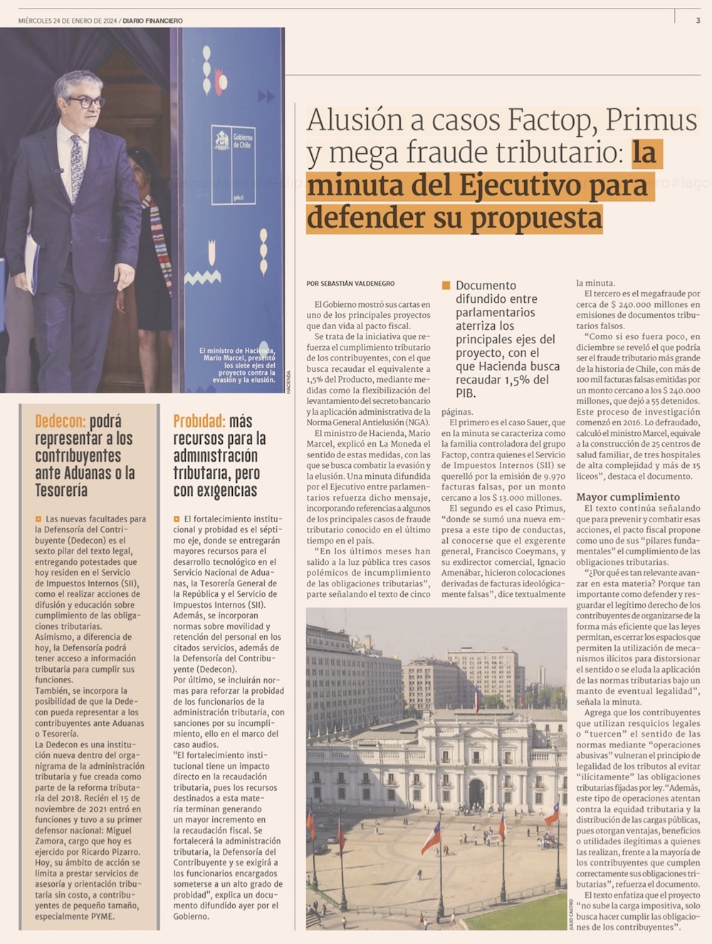 Con reparos de expertos y críticas en el Congreso, Marcel retoma polémico punto de norma antielusión - (El Mercurio de Santiago)