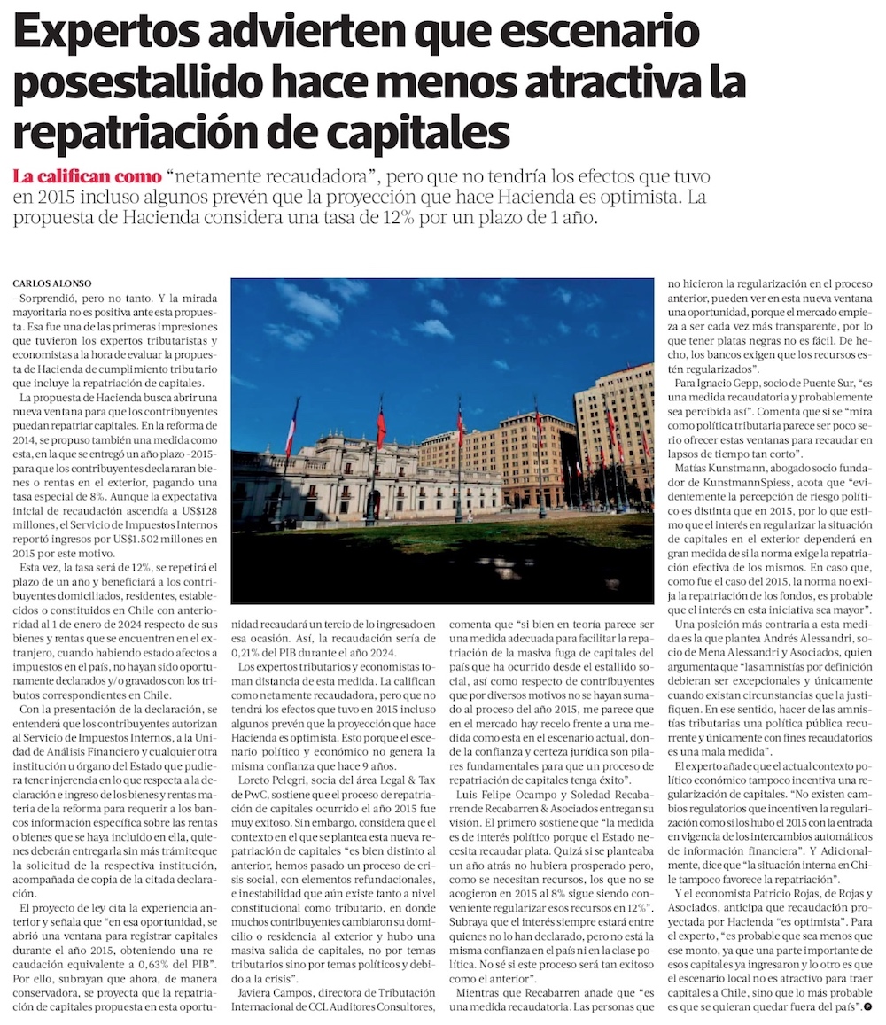 Total de capitales por repatriar desde el exterior se acercaría a los US$ 6.000 millones - (El Mercurio de Santiago)