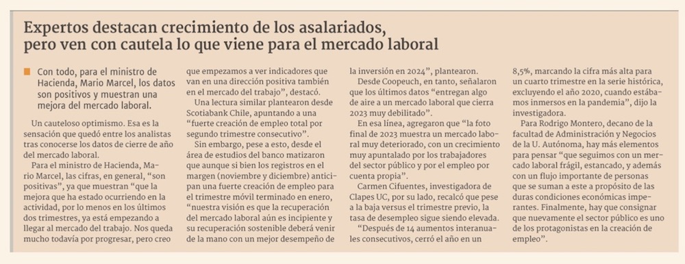 Tasa de empleo llega a mayor nivel desde inicios de la pandemia, pero 2023 cierra con 90 mil desocupados más que hace un año - (Pulso)
