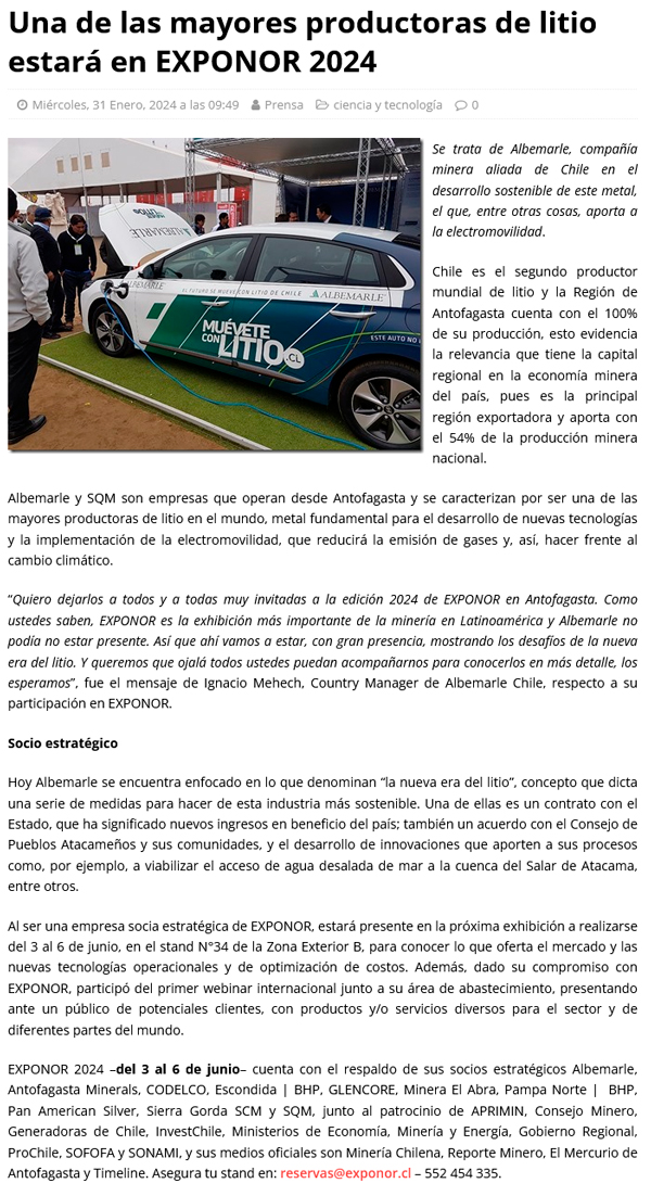 Una de las mayores productoras de litio estará en EXPONOR 2024 - (antofagastanoticias)