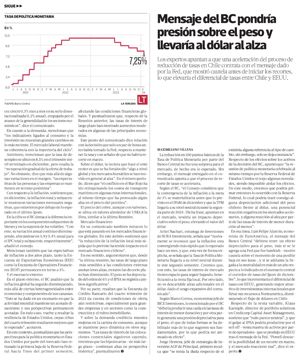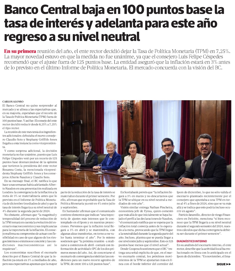 Banco Central acelera recortes de tasa y anticipa que alcanzará un 4% en 2º semestre - (El Mercurio de Santiago)