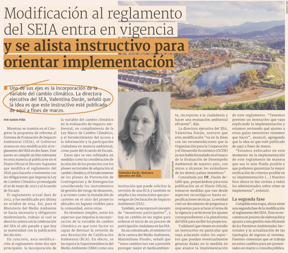 Reglamento del SEIA se adapta a nueva ley y al acuerdo de Escazú - (El Mercurio de Santiago)