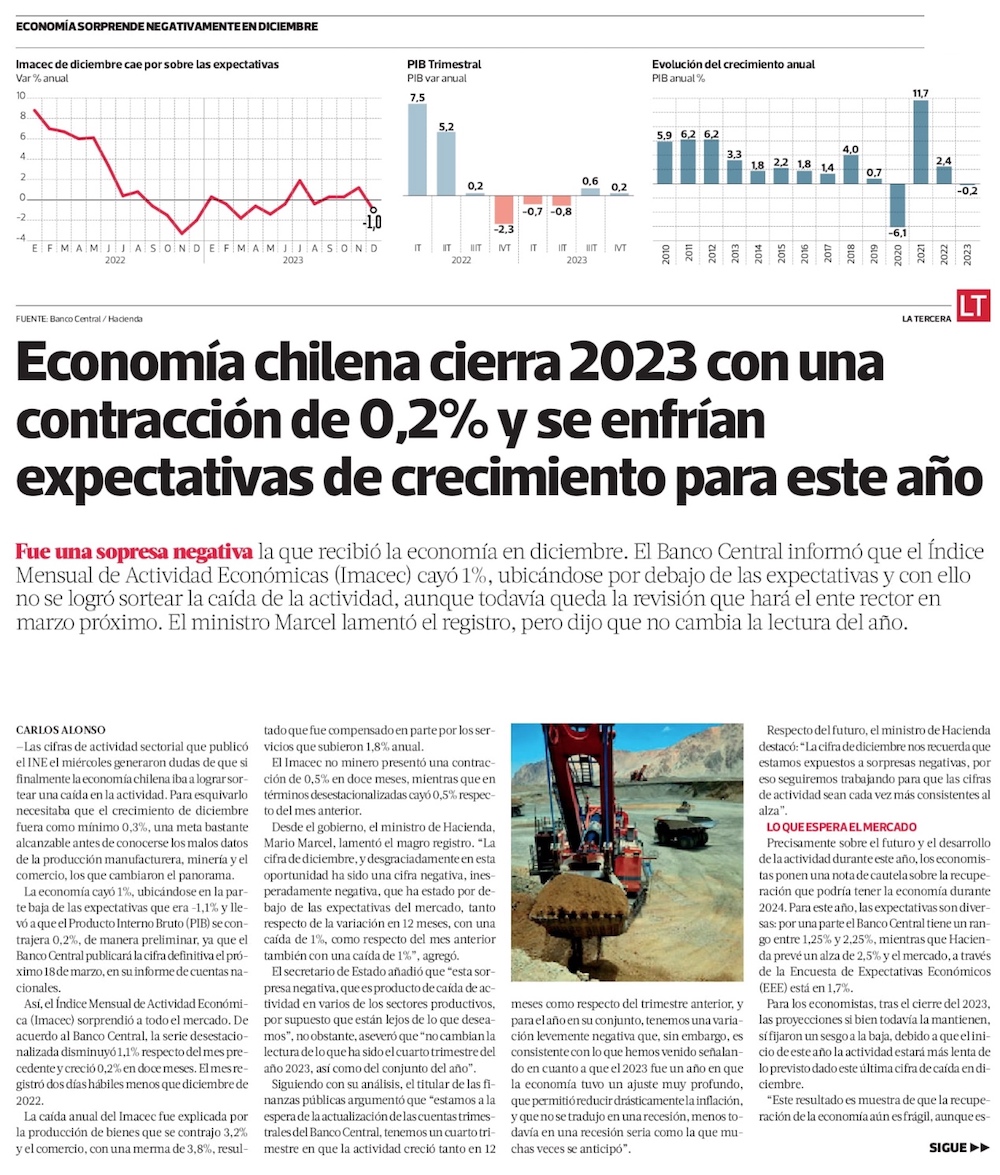 Inesperada caída en 2023 anticipa un débil comienzo de año y mercado aplica sesgo a la baja al PIB de 2024 - (Diario Financiero)