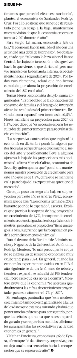 Inesperada caída en 2023 anticipa un débil comienzo de año y mercado aplica sesgo a la baja al PIB de 2024 - (Diario Financiero)