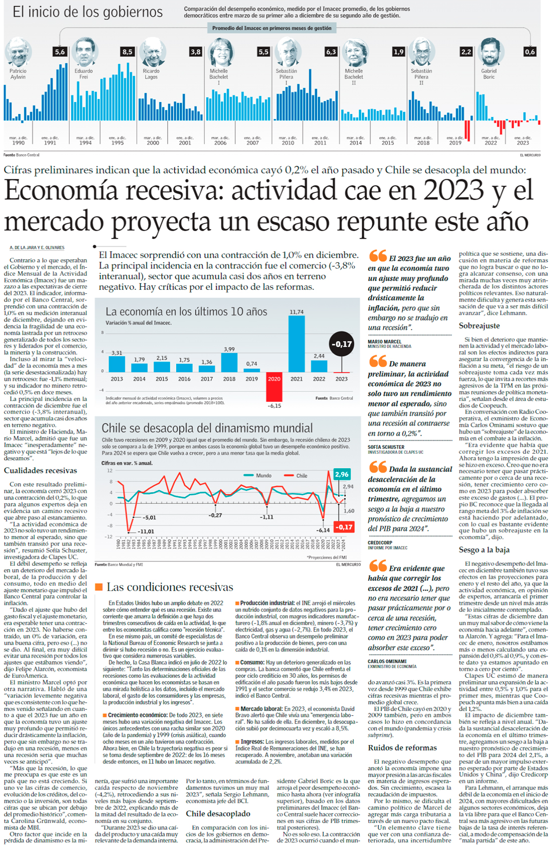 Inesperada caída en 2023 anticipa un débil comienzo de año y mercado aplica sesgo a la baja al PIB de 2024 - (Diario Financiero)
