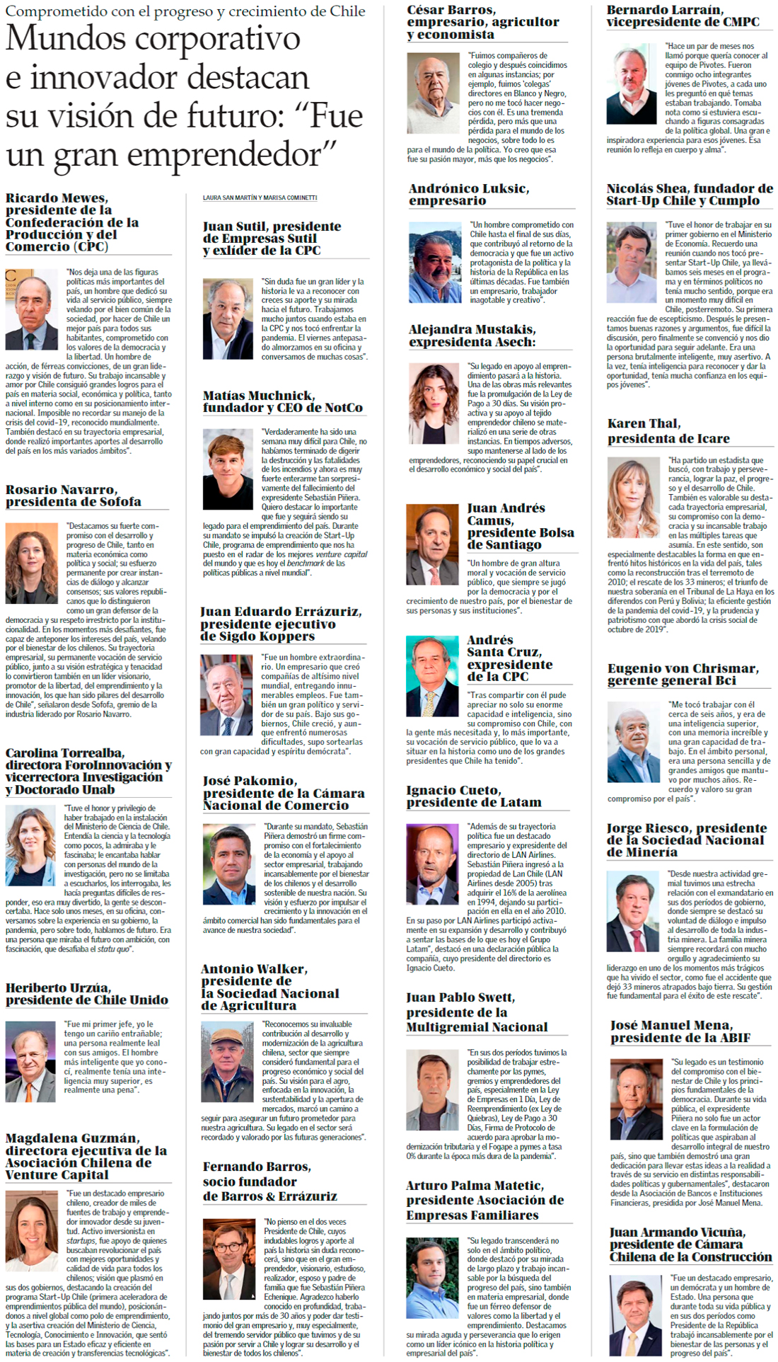 Boric califica a Piñera como un “demócrata desde la primera hora” y decreta duelo nacional de tres días - (El Mercurio de Santiago)