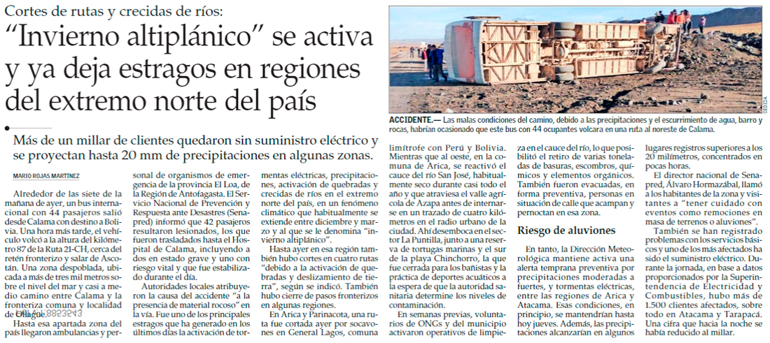 Precipitaciones comienzan a afectar a los poblados y rutas de la Provincia El Loa - (Estrella de Antofagasta)