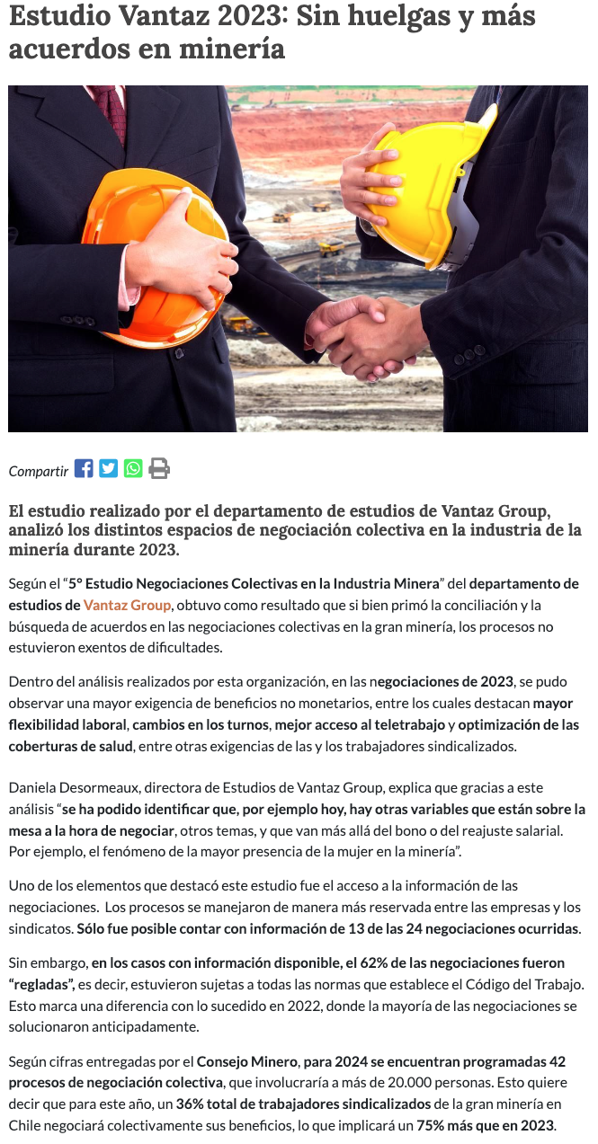 Estudio de Vantaz analiza evolución de las negociaciones colectivas en el sector minero - (mch.cl)